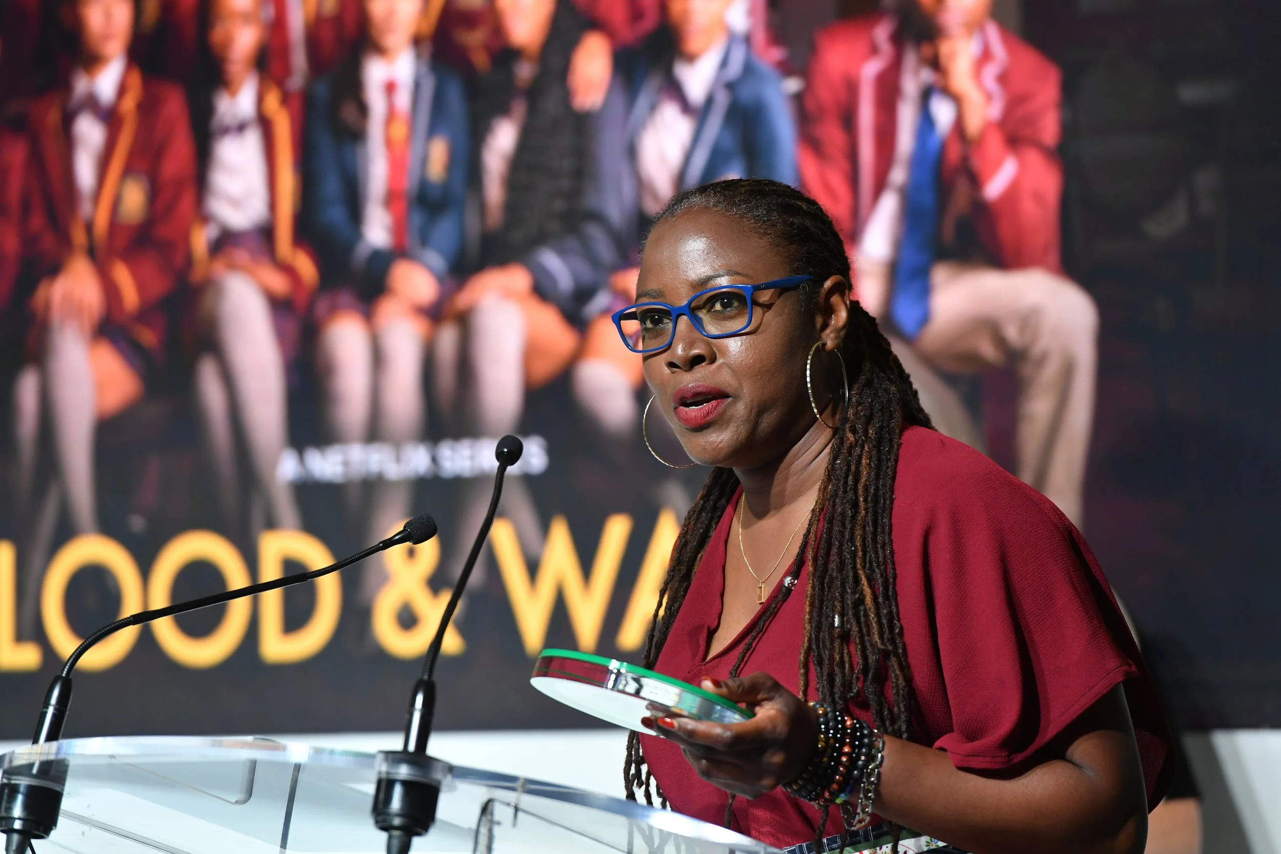 SPI Consultant, Nneka Luke collecting the Diversity, Equity and Inclusion Award for Blood and Water on behalf of South African production company, Gambit Films. Image Credit: Screen International